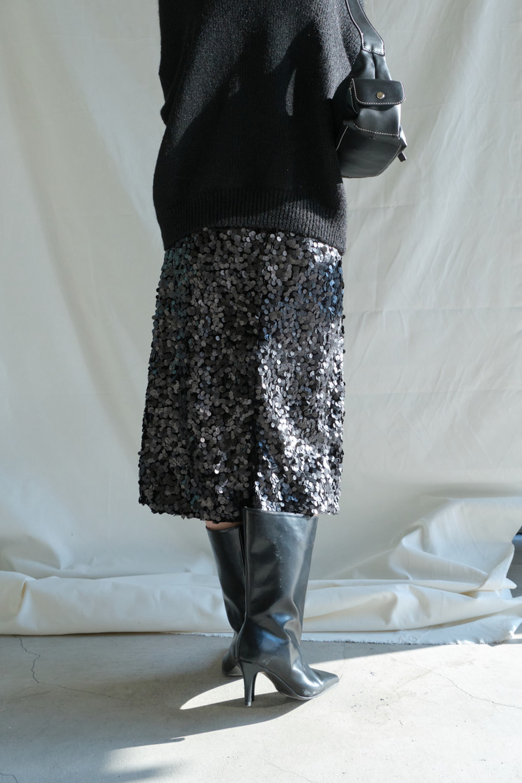 Matte Spangle Midi Skirt (Black)