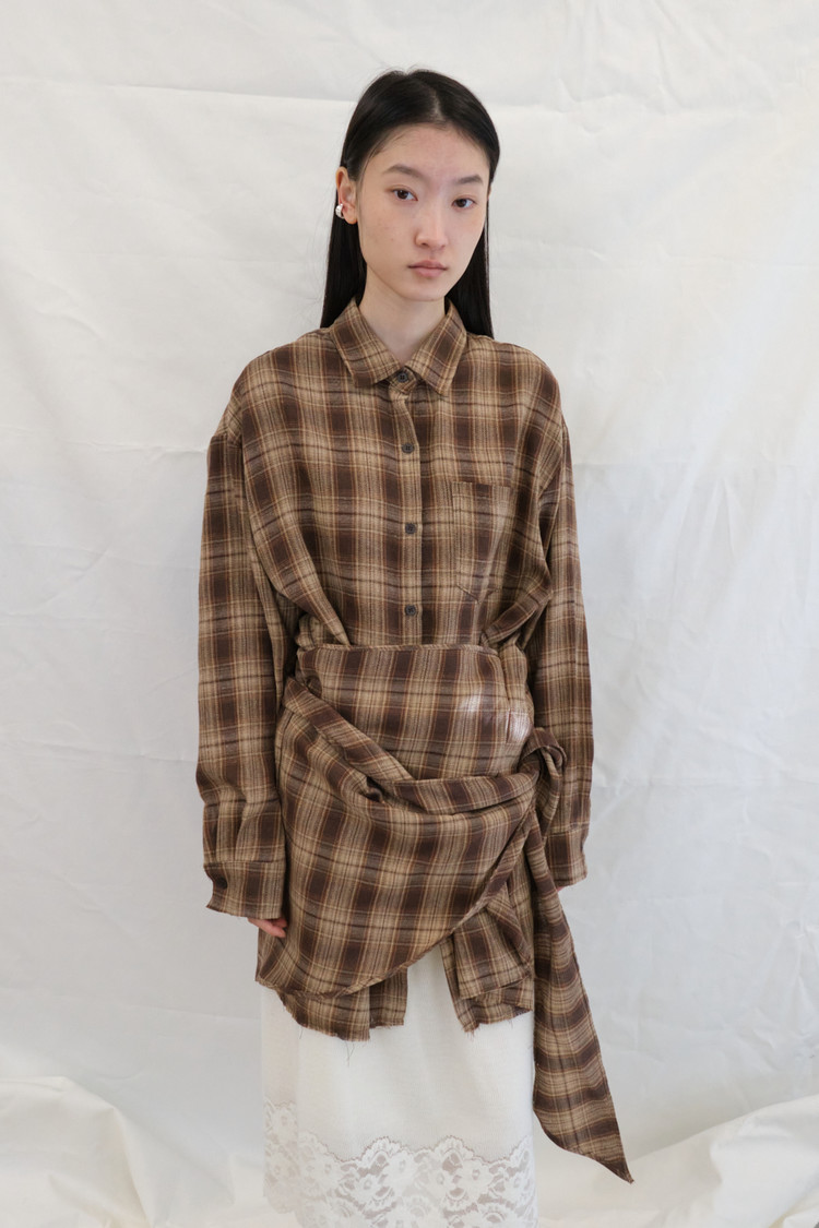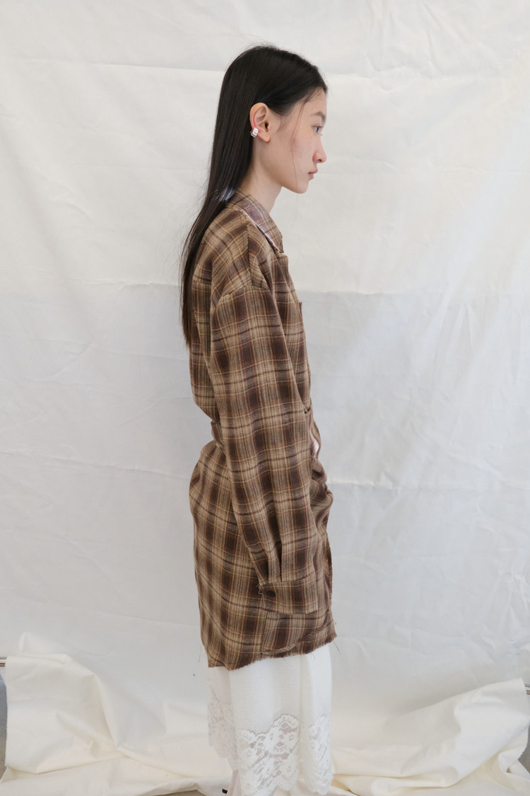 Check Wrap Fleece Shirt (Brown)
