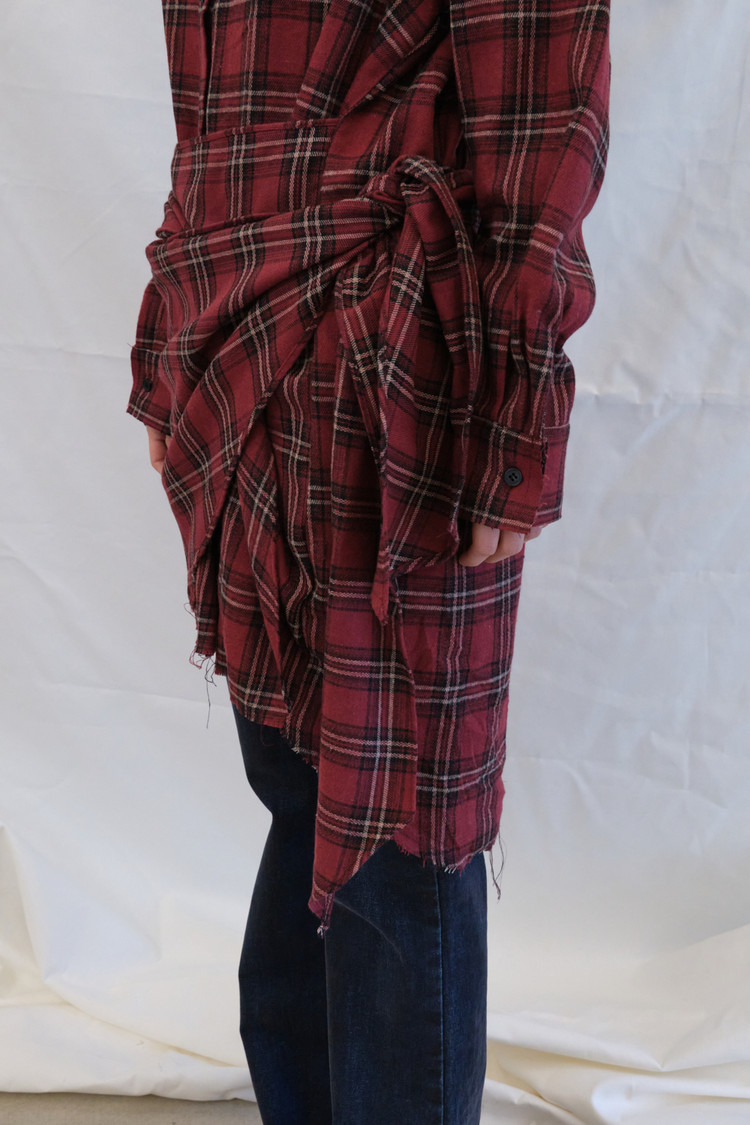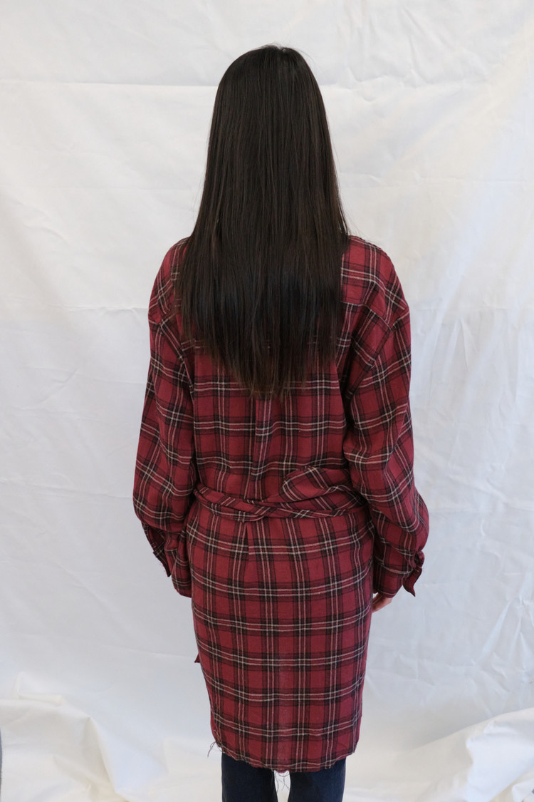 Check Wrap Fleece Shirt (Wine)