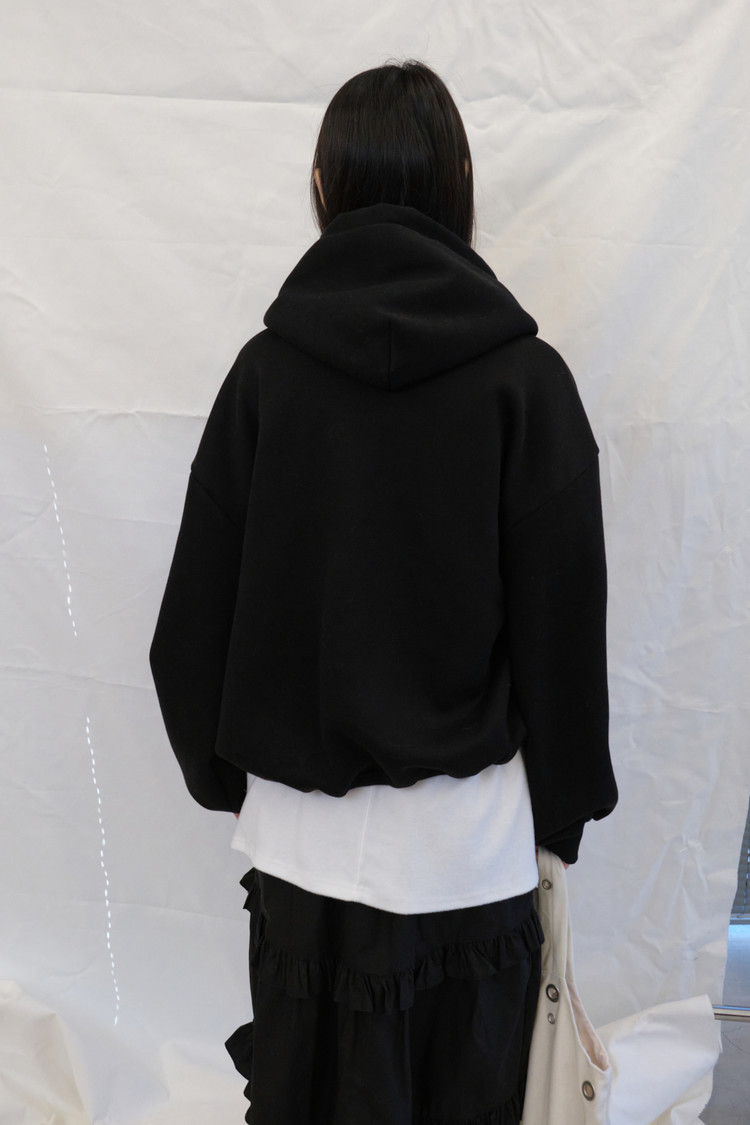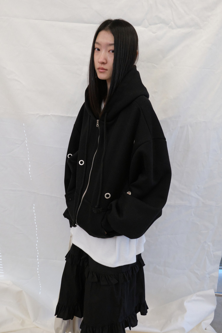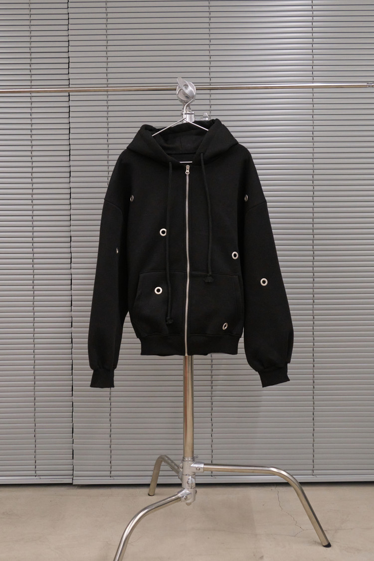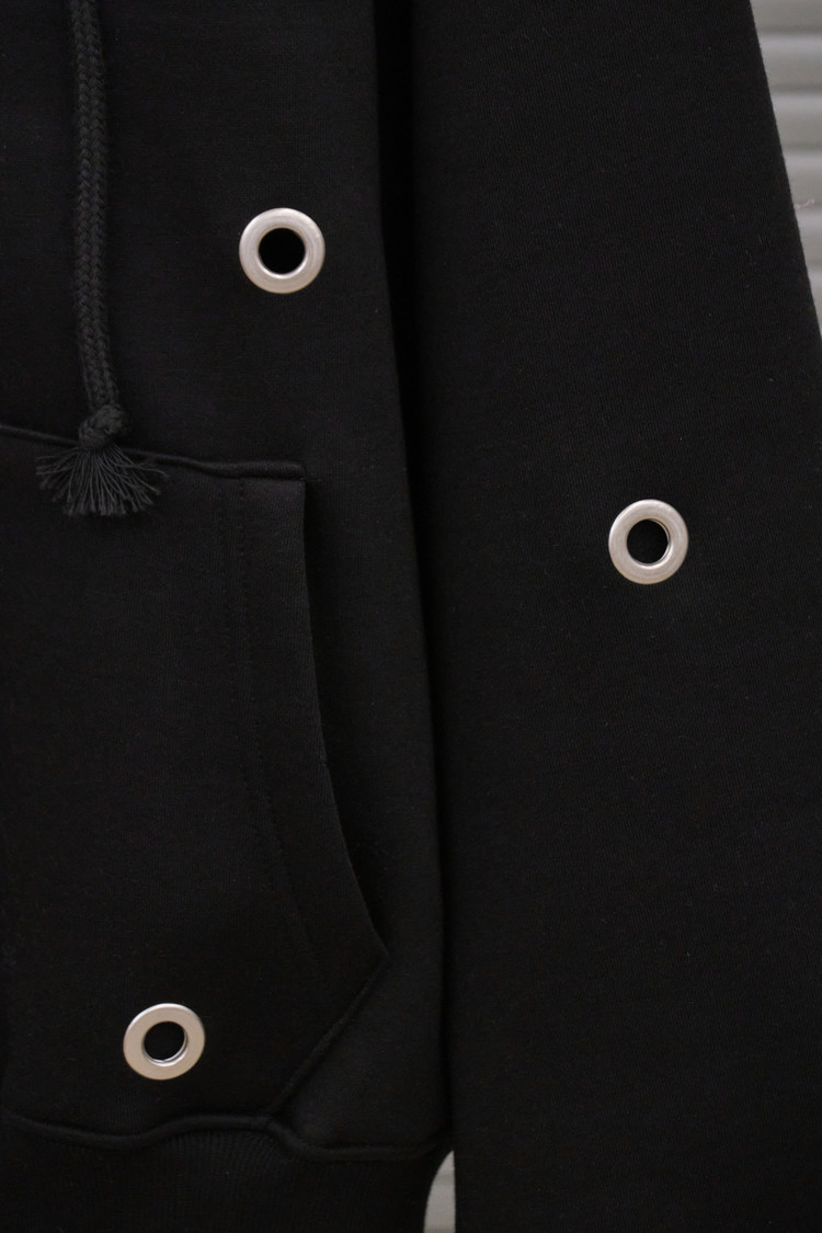 Eyelet Fleece Hood Zip-Up (Black)