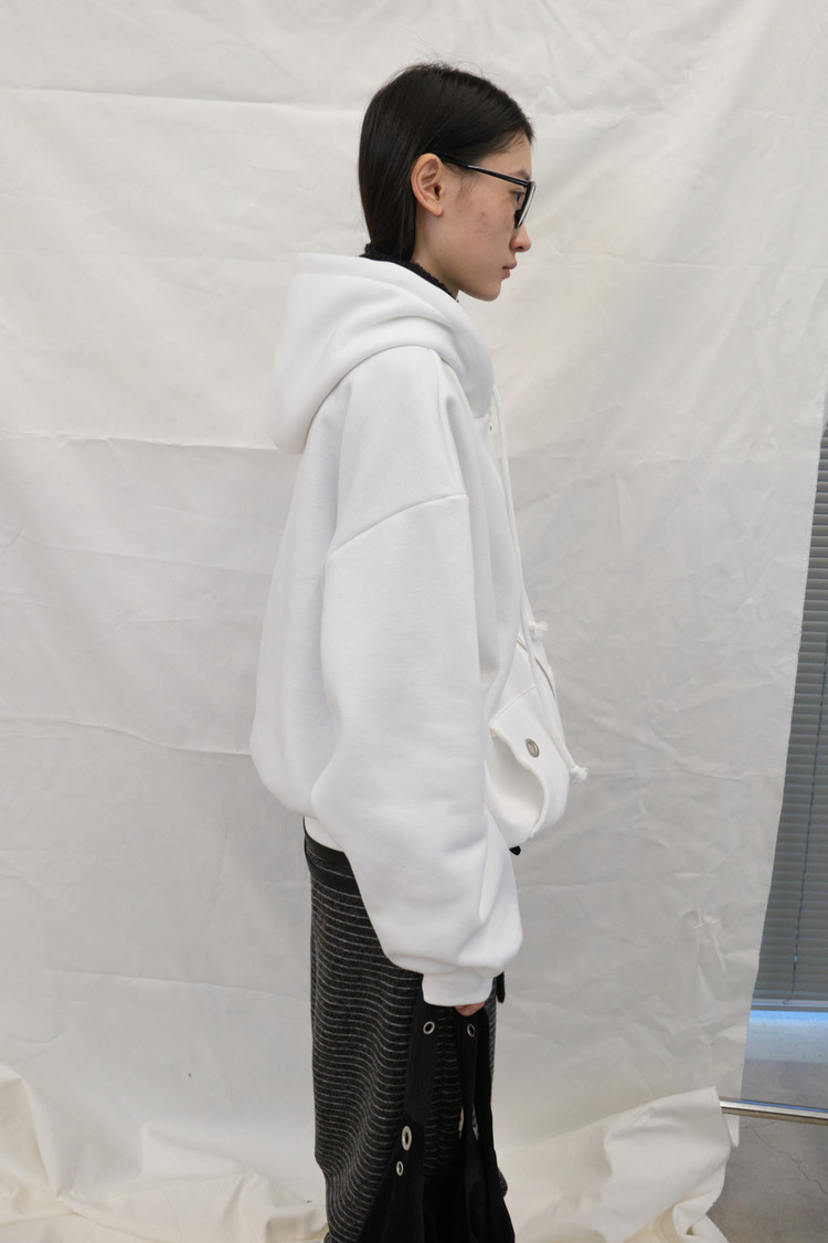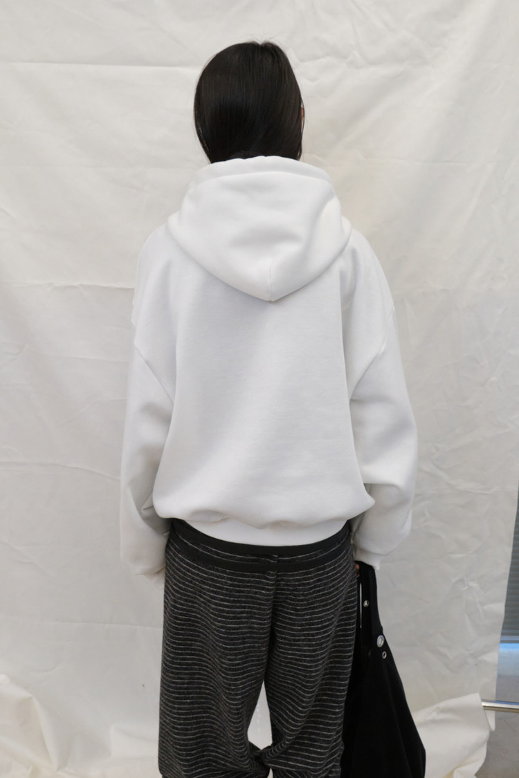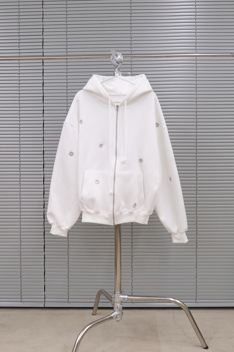 Eyelet Fleece Hood Zip-Up (Ivory)