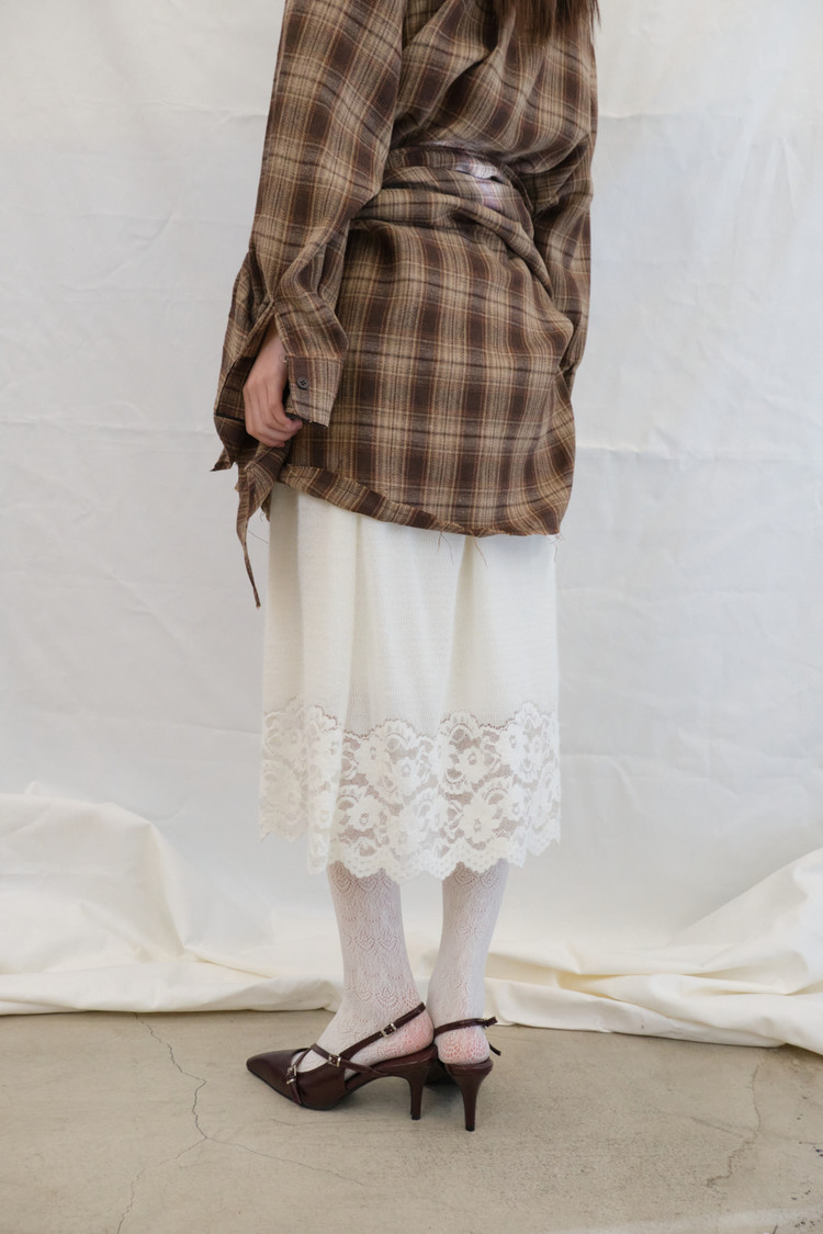 Lace Knit Midi Skirt (Ivory)