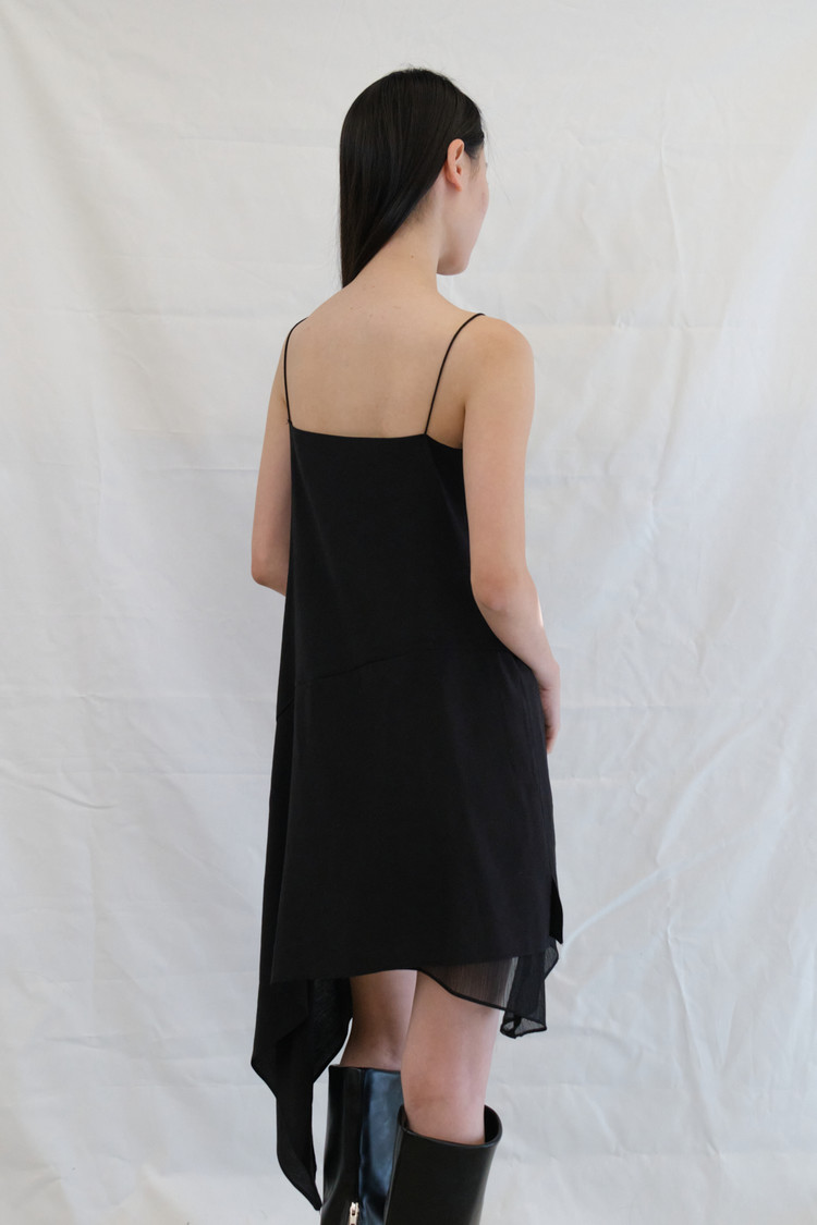 Single-Side Drape Slip Dress (Black)NEW