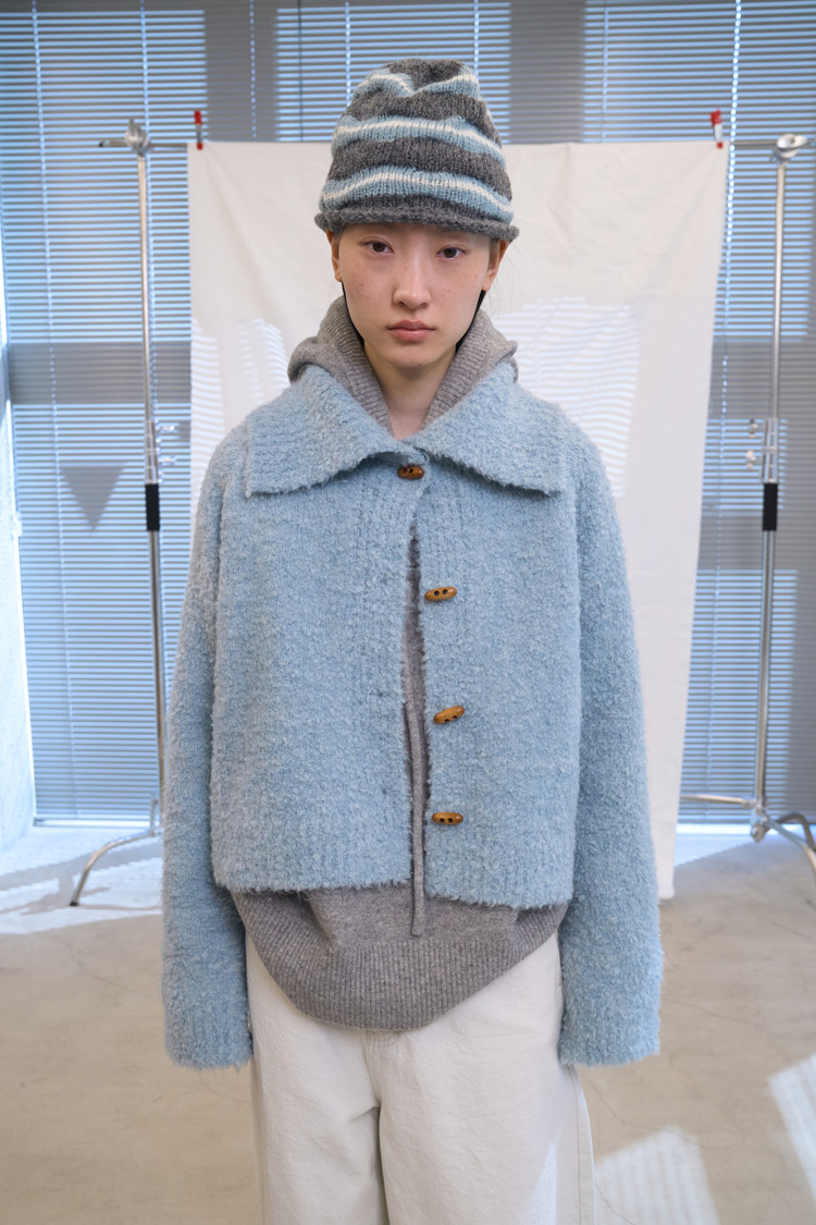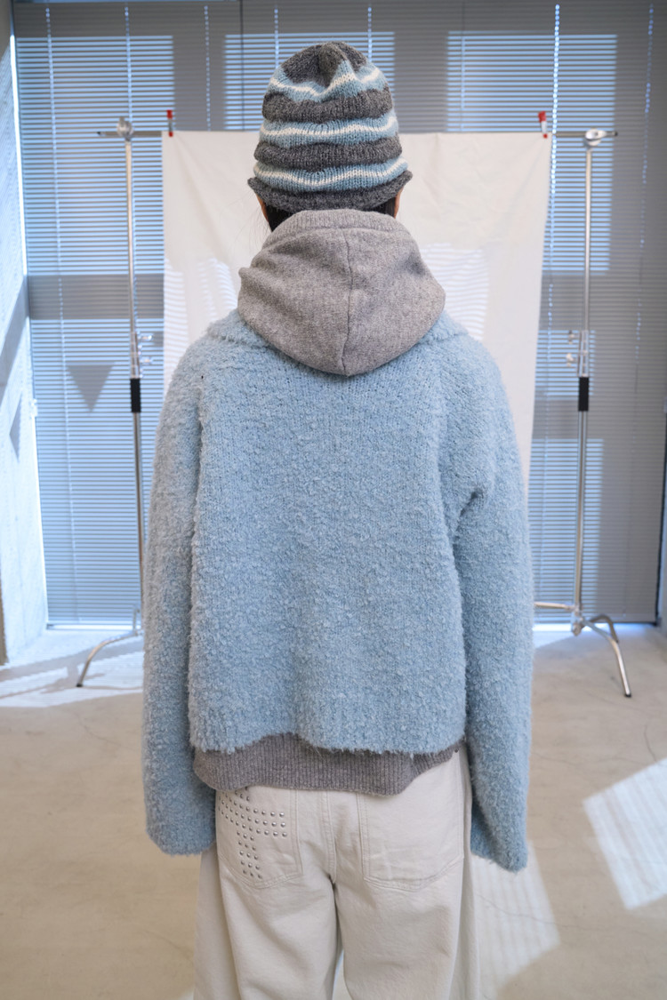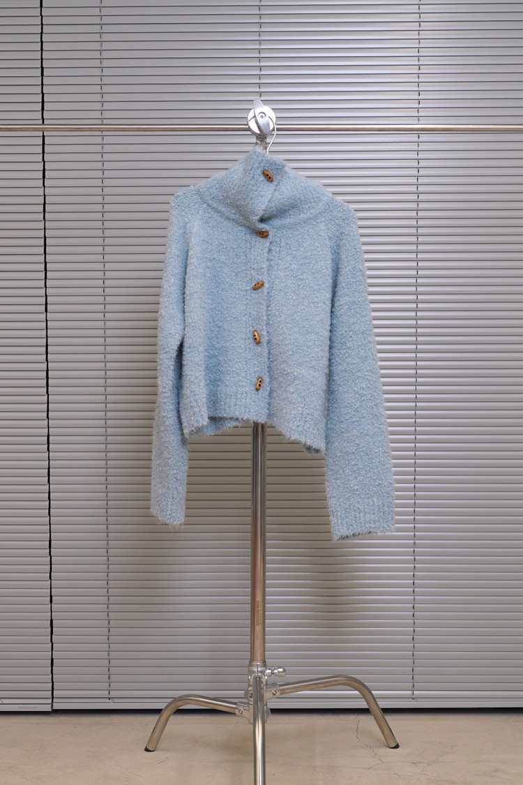 Boucle High-Neck Cardigan (Sky Blue)NEW