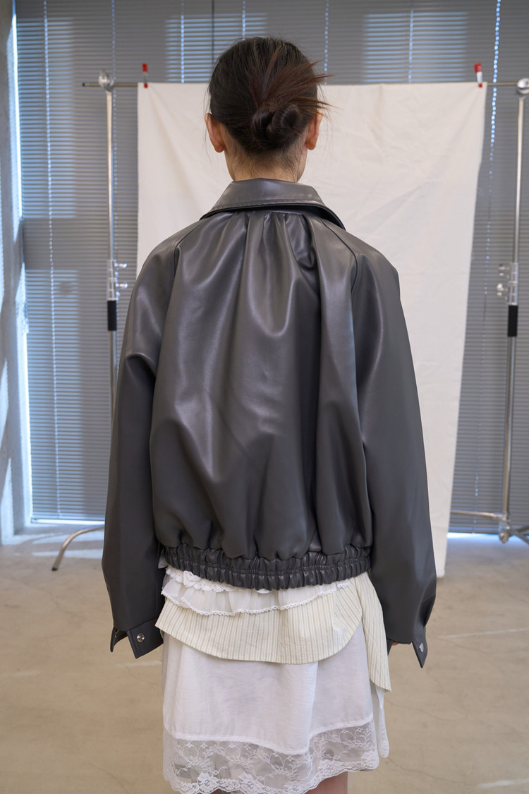 Leather Two Way Blouson (Charcoal)NEW