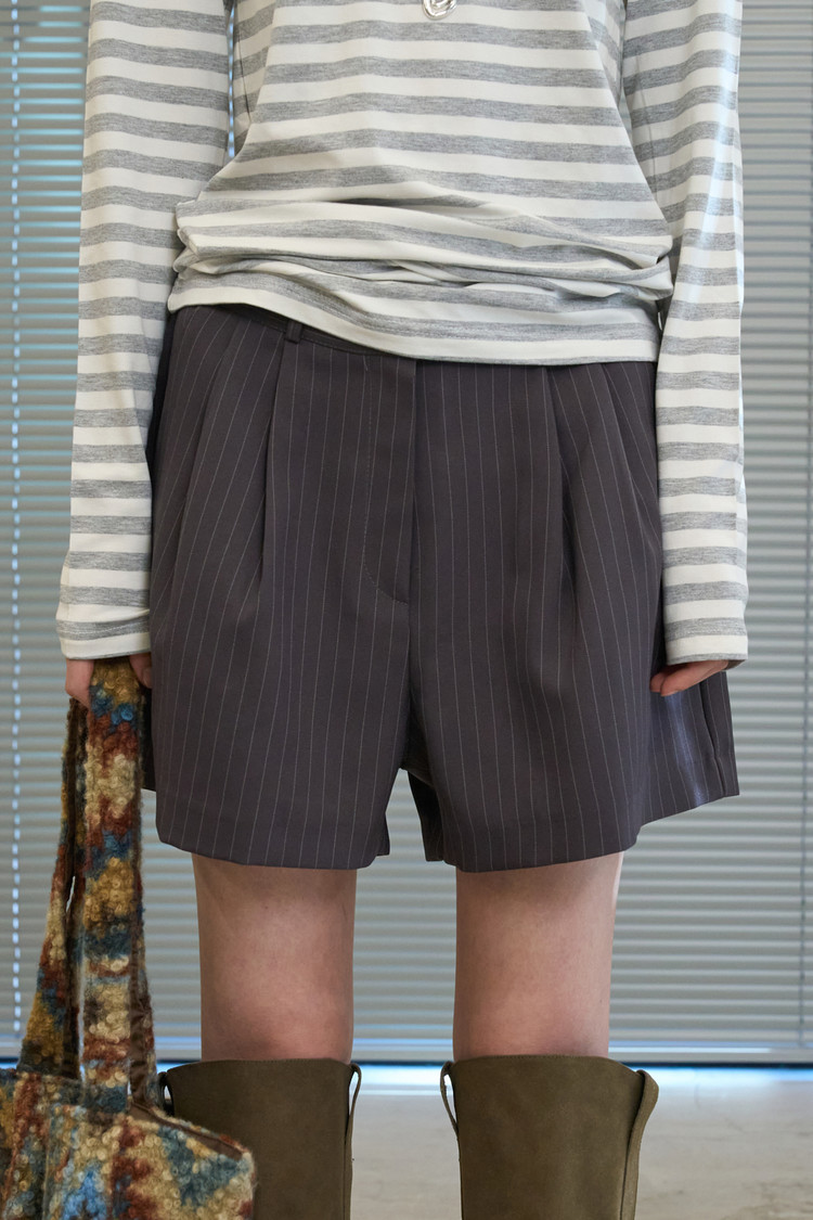 [3/11 순차 출고] Pinstripe Pintuck Tailored Shorts (Charcoal)NEW