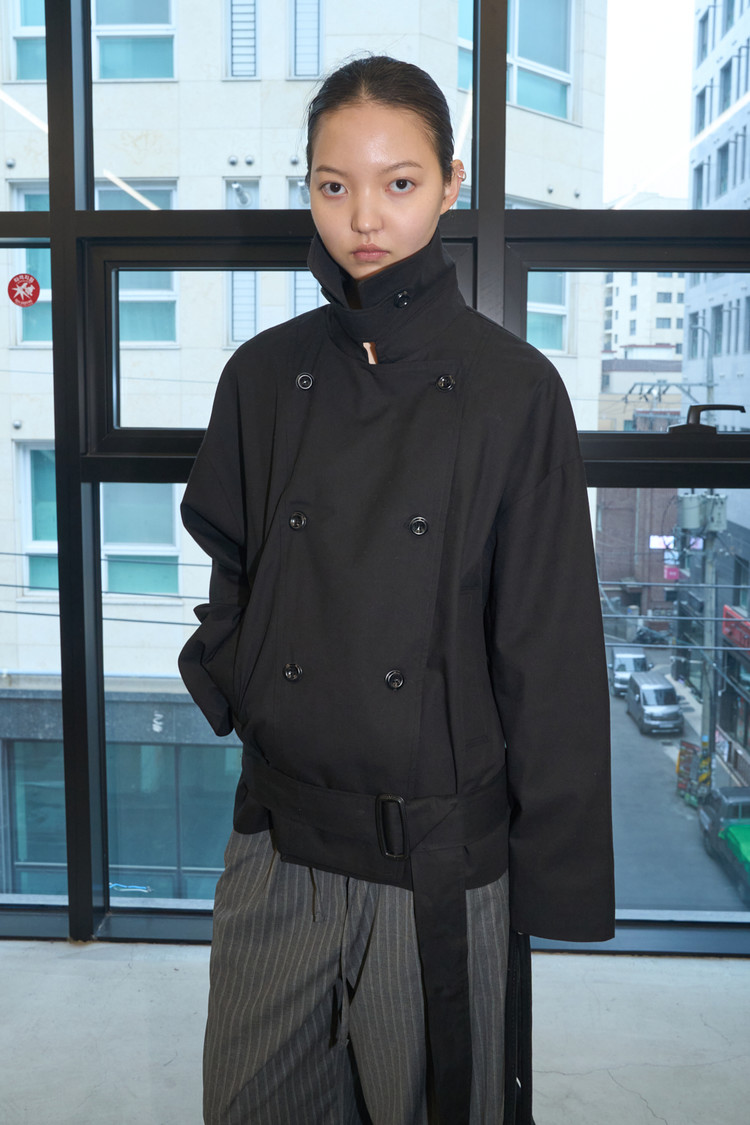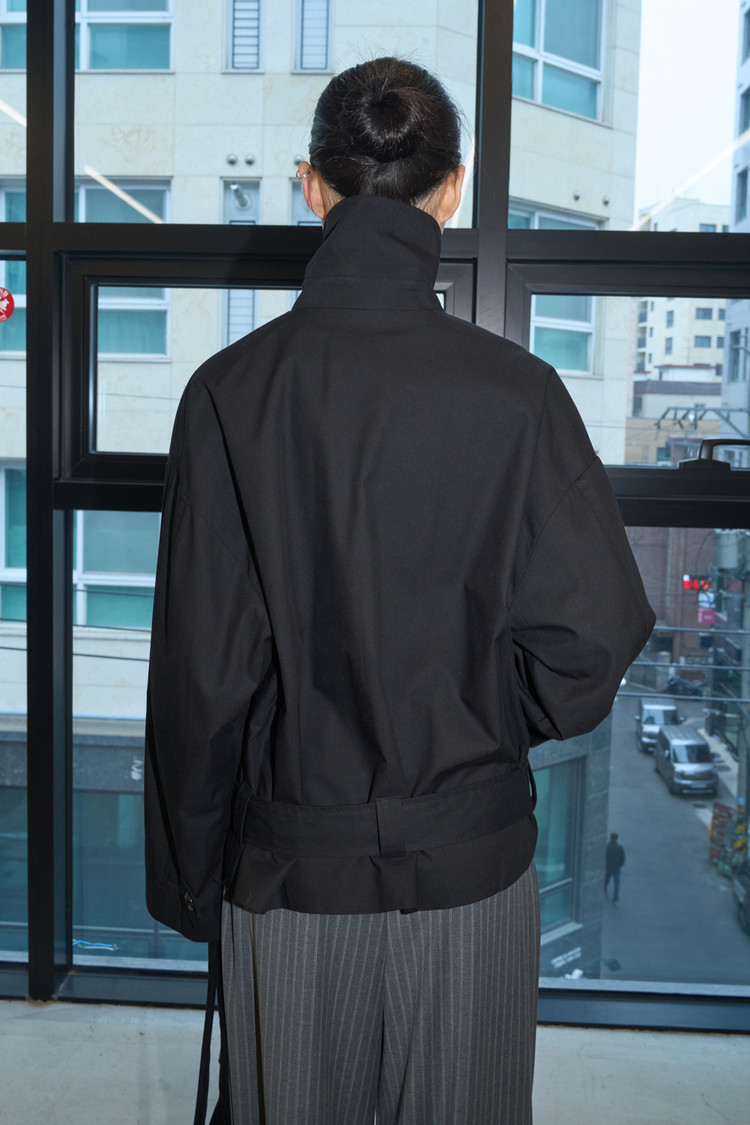 Belted Short Trench Coat (Black)NEWTIME SALE