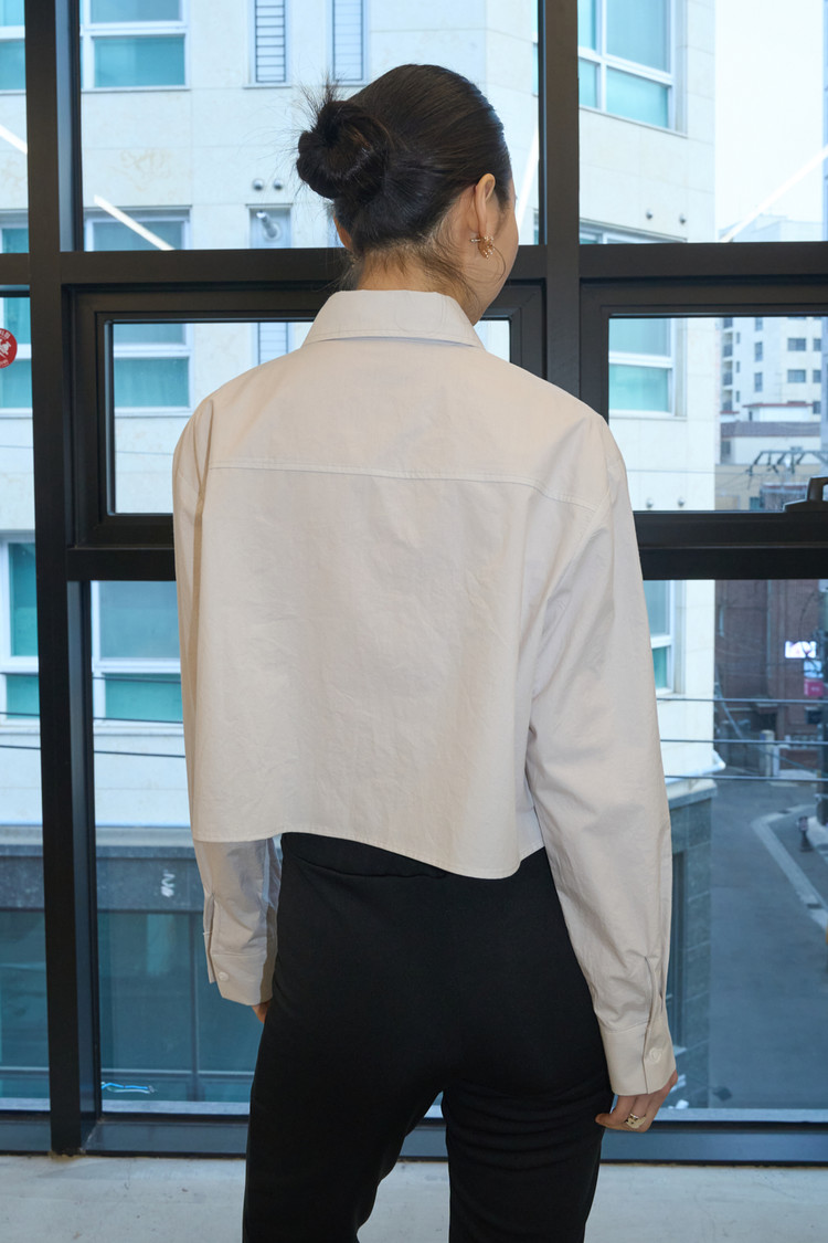 Cutout Cropped Shirt (Light Gray)NEWTIME SALE