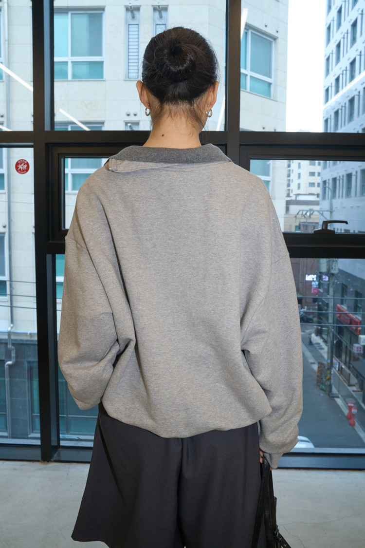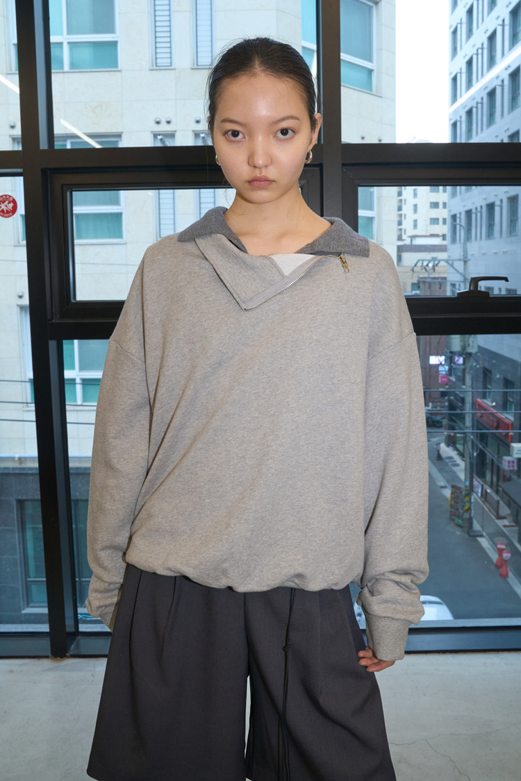 Diagonal Zipper Sweatshirt (Gray)NEWTIME SALE