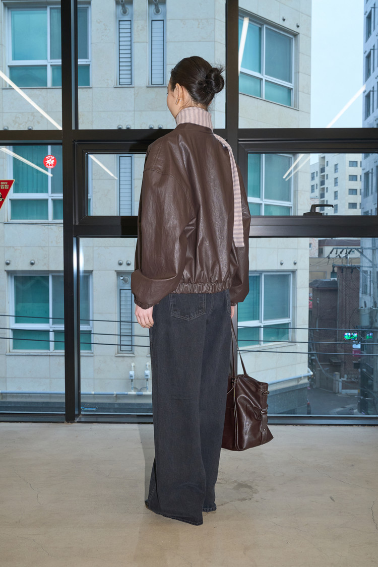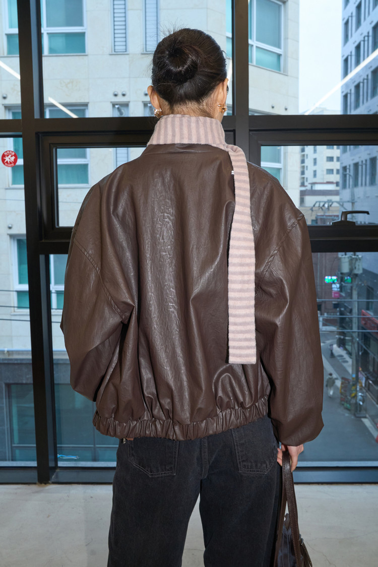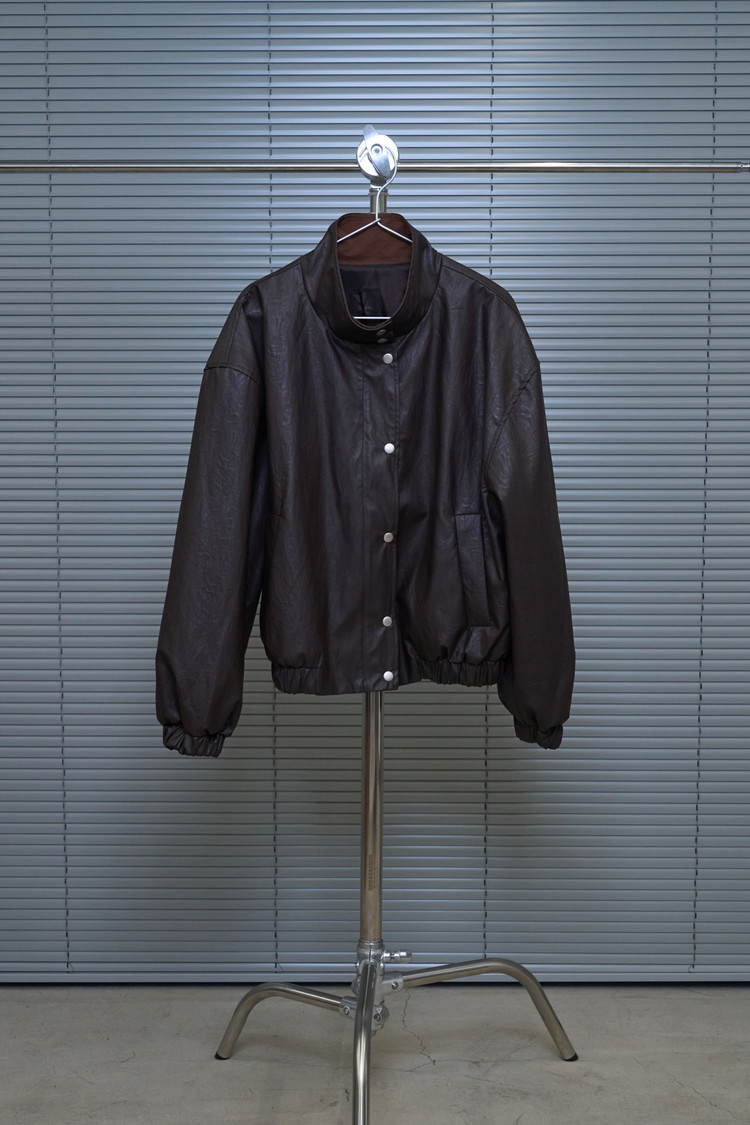 High-Neck Leather Blouson (Burgundy)NEWTIME SALE