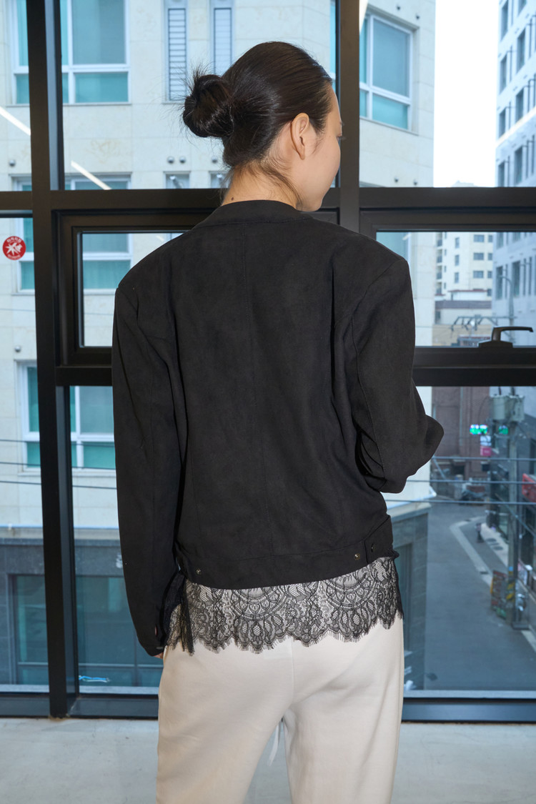Snap-Collar Suede Blouson (Black)NEWTIME SALE