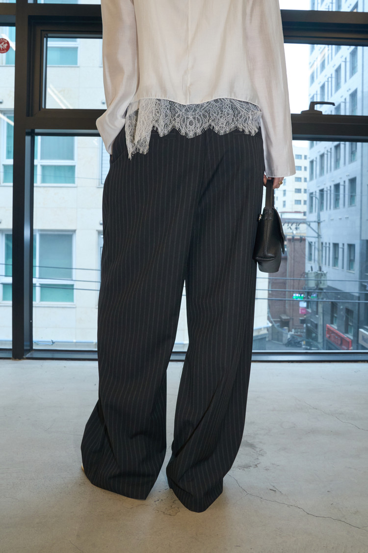 String-Waist Striped Pants (Black)NEWTIME SALE