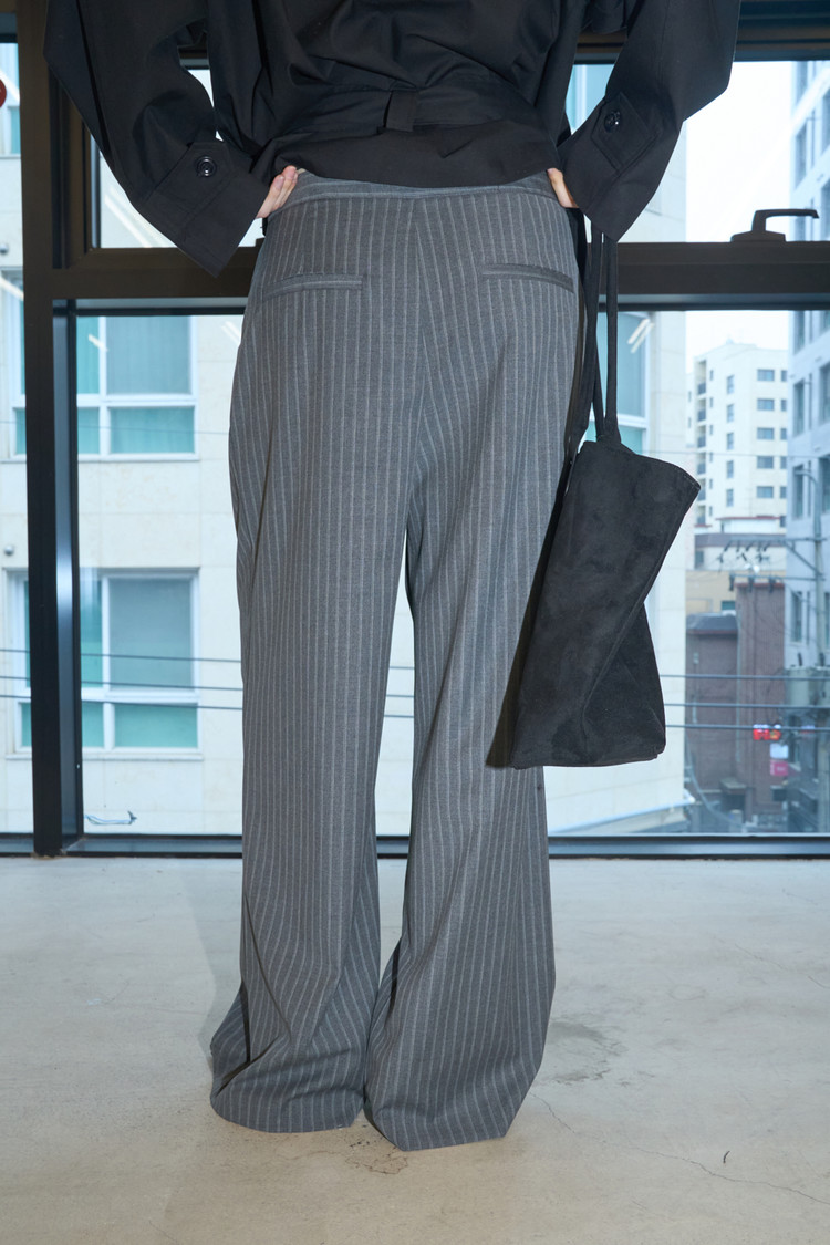String-Waist Striped Pants (Gray)NEWTIME SALE