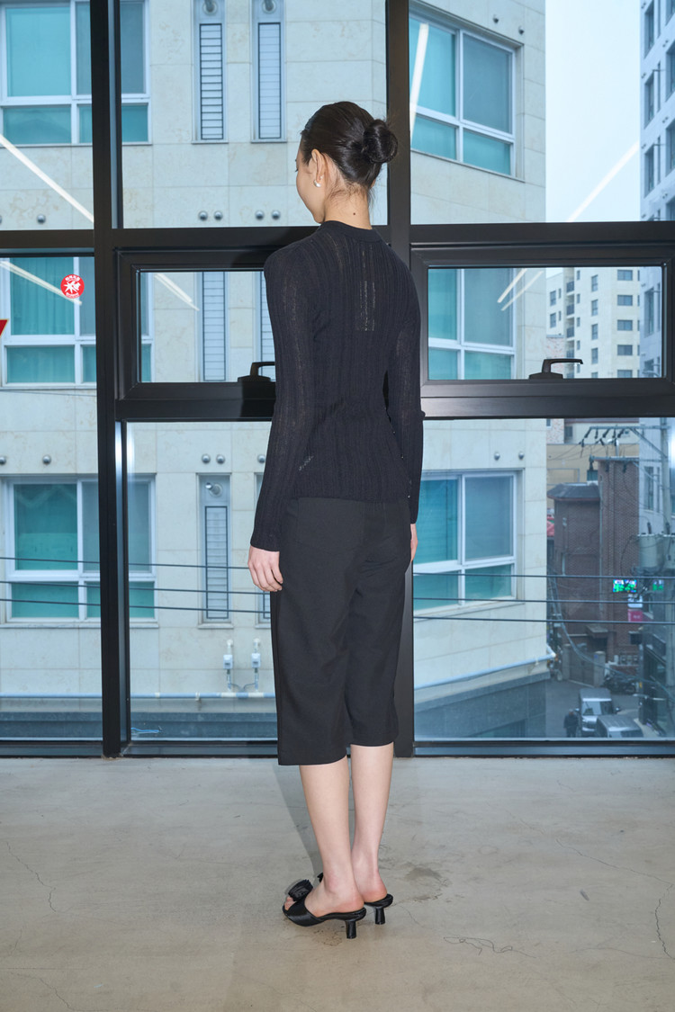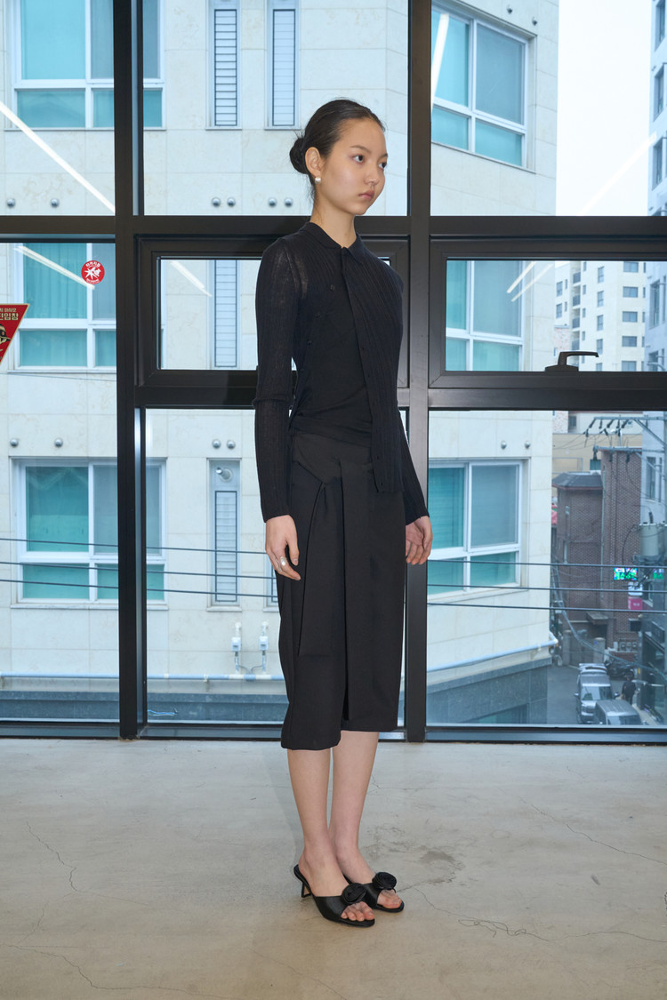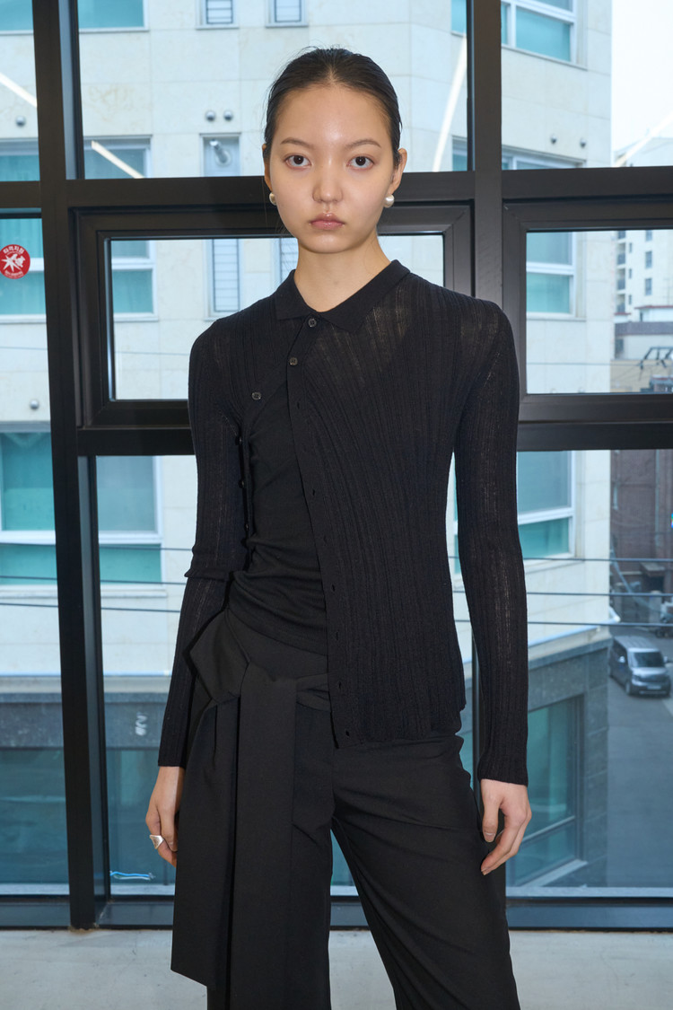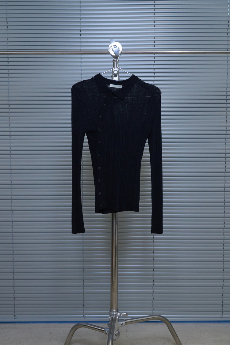 Unbalanced Slim-Fit Ribbed Cardigan (Black)NEWTIME SALE