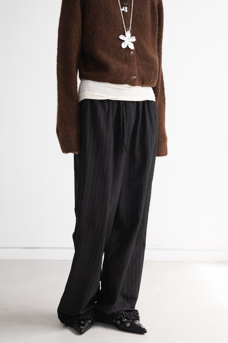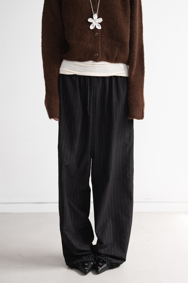 [마지막 재고] Striped Frill Banding Pants (Black)