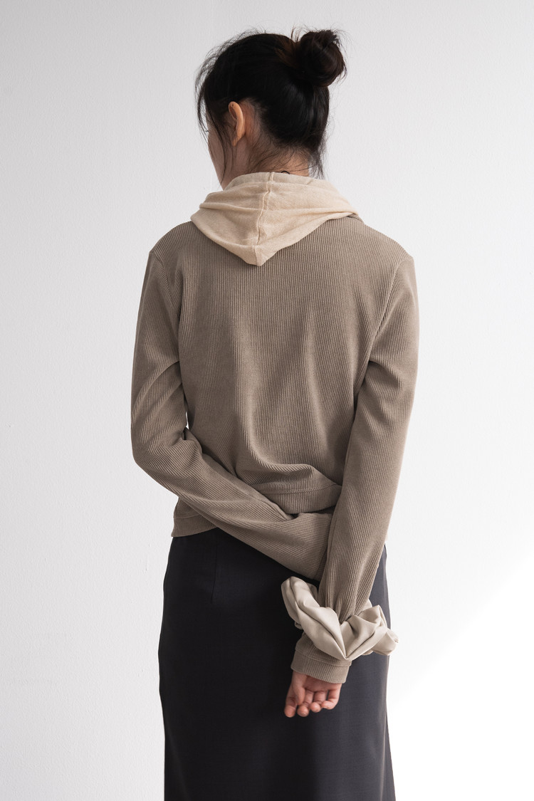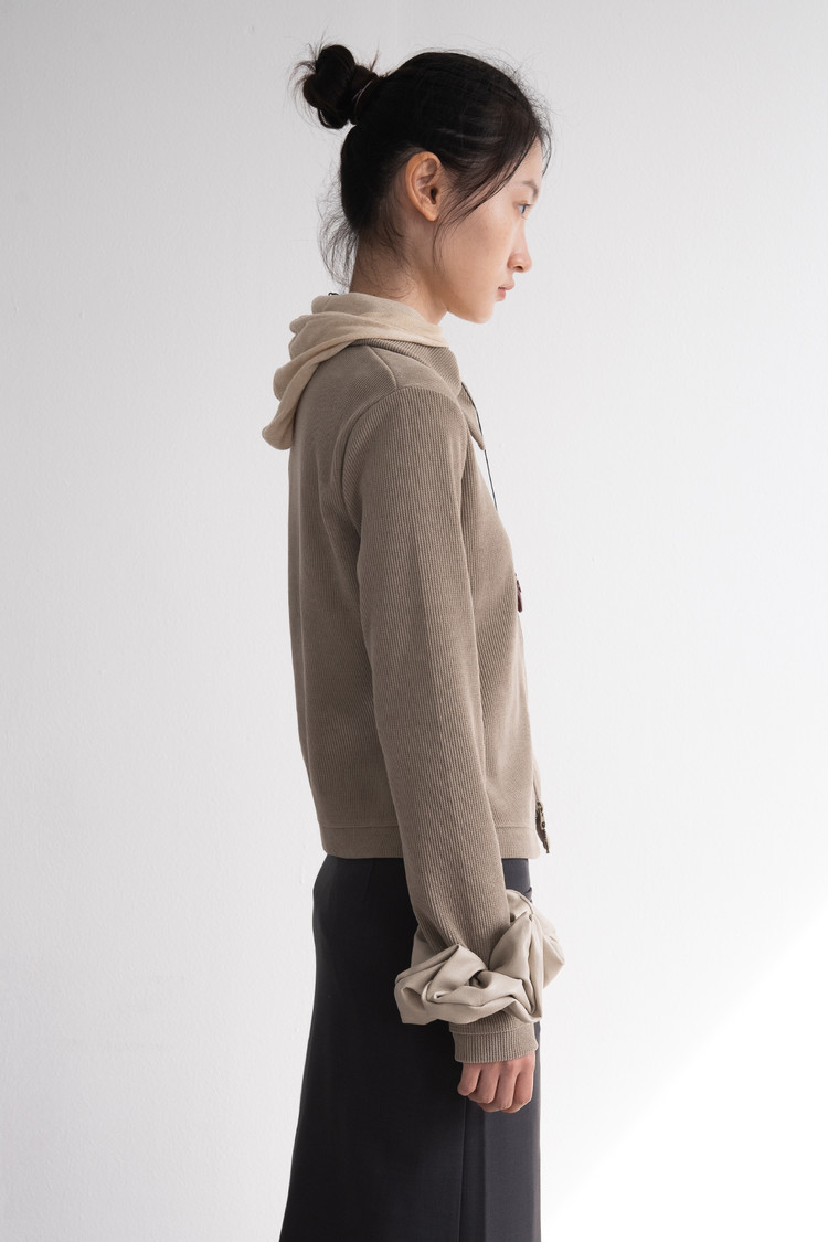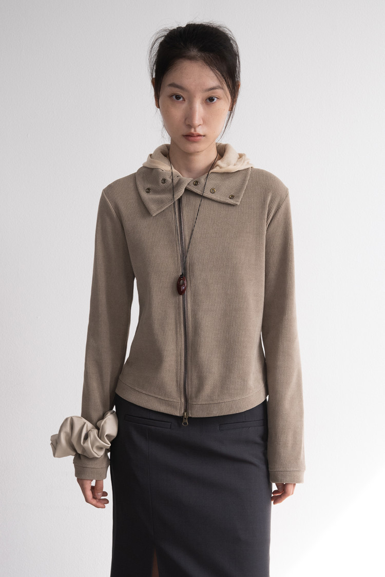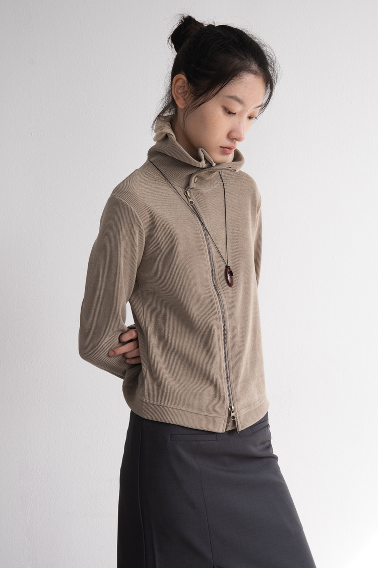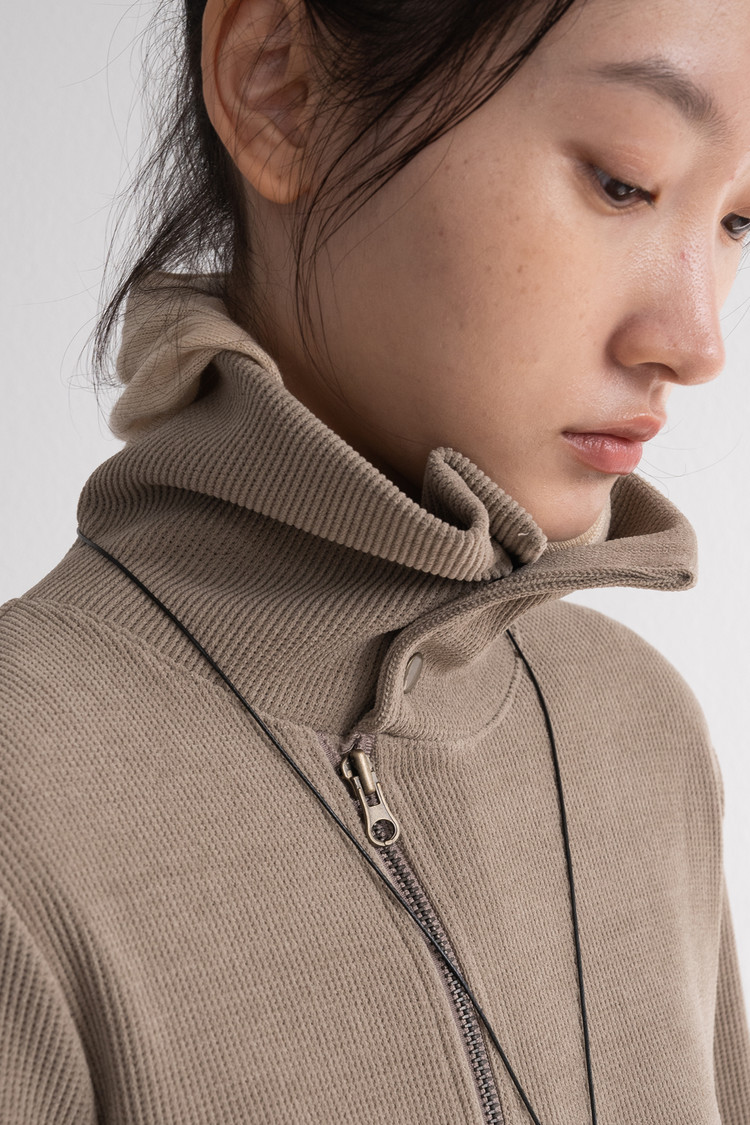 Modified Neck Double Zip-Up (Beige)SOLDOUT
