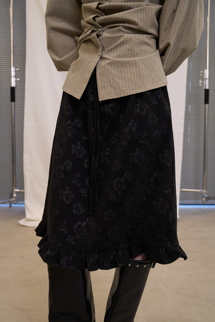 Rose Frill Midi Skirt (Black)