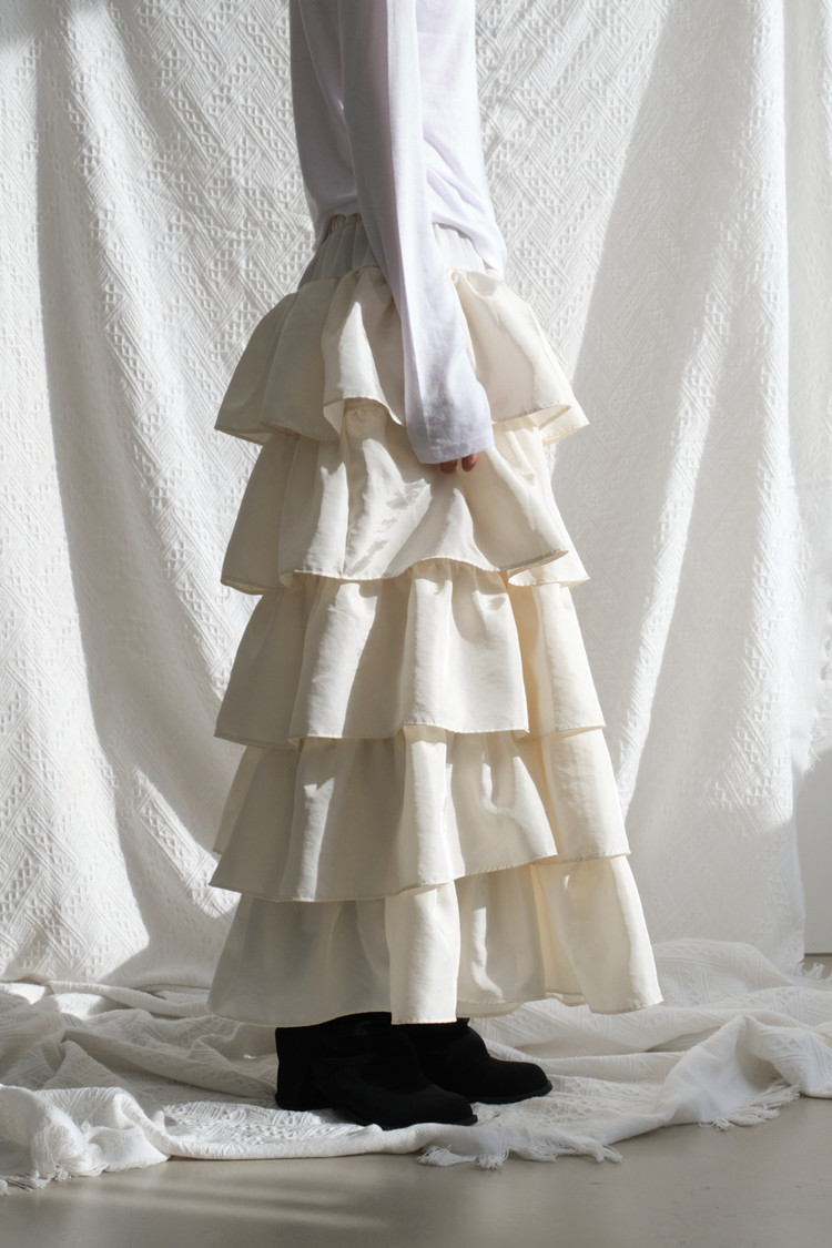 Ruffle Long Skirt (Ivory)