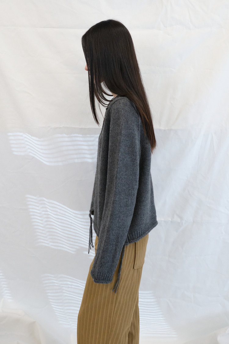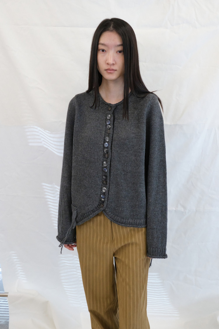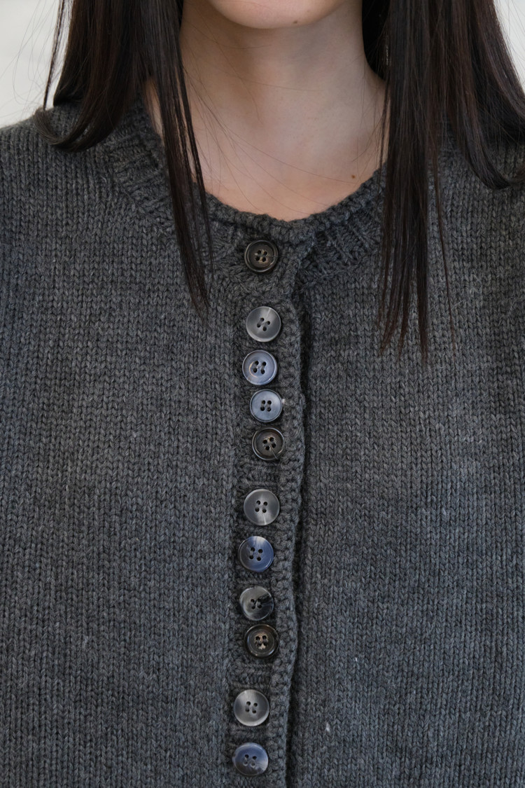 [3/10 순차출고] Acrylic Button Curved Cardigan (Charcoal)
